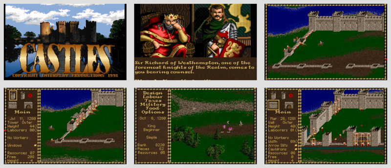 Our work on Heavy Barrel attracted attention from Brian Fargo, head of local publisher Interplay Productions, which was rapidly growing and already building a reputation for first-class PC games. Brian saw the power of our custom game engine and approached us with an idea for an original game where players would build a castle and defend it against attack, with the working title Castle Builders. We worked very closely with Interplay’s team, who provided tons of superb advice as well as various game assets, and in 1991 released our first original title, now known as Castles. The game went on to sell over half a million copies and get selected for their 10th Anniversary compendium.