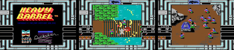 This is where Quicksilver’s strengths made themselves evident. Games like Karnov were built for arcade machines that had hardware scrolling and advanced moving object support. In the case of Karnov, the background maps were as large as 30 screens of data. Heavy Barrel posed even tougher challenges. At times, combat scenes could include as many as 100 separate moving objects.