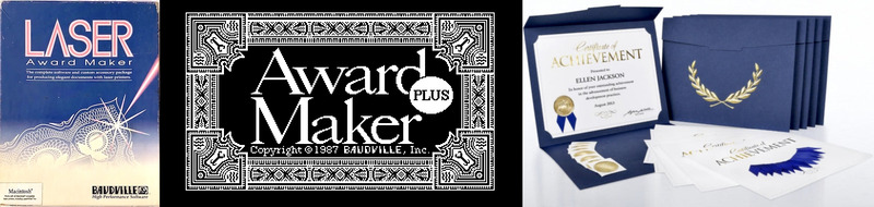 We then had the pleasure of traveling to Baudville’s headquarters in Grand Rapids, MI and then on to an off-site brainstorming session in lovely Traverse Bay, where we pitched the concept of a high-resolution laser-printer version of Award Maker. This was clearly an idea whose time had come. Laser printers were far, far easier to control than the old dot-matrix models, and produced beautiful pages at the then-amazing resolution of 300 DPI – and, with SQUARE PIXELS! Although the output was only black and white, that wasn’t a problem, because Baudville’s side business involved selling pretty paper stock for certificates. It was an ideal match.